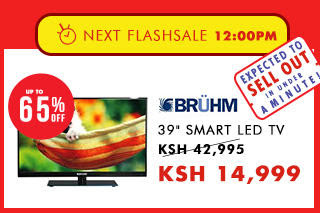 Today’s first flash sale is this 39″ Smart LED TV. The bad boy that normally trades for Ksh. 42,995 is down by a whooping 65% discount at just Ksh. 14,999. This is a deal to die for, I swear!!! As you can expect, there will not be enough to go round for everyone. What that means is that the TV is expected to sell out in seconds. Will you be the lucky few? Only time can tell. Plus you lose nothing from trying, right? Click the image above to watch the countdown or See Deal Here…