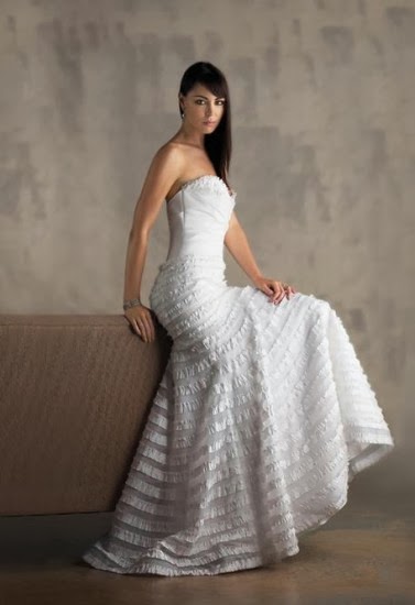Another category you’ll find in the hired wedding dresses store is the column dress. This is a straight